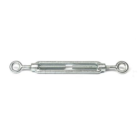 Oceľový napínač s okom na oboch stranách na dokonalé napínanie (rozťahovanie) oceľových lán alebo káblov. Povrch je bielo pozinkovaný.